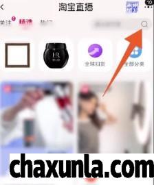 之后找到右上方放大镜图标,输入需要搜索的商品或者主播名称。