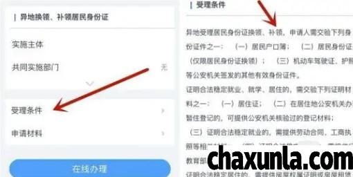 之后点击受理条件,即可查看到补办身份证所需的资料。