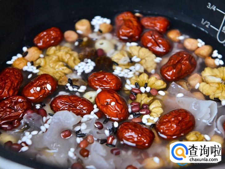 首先需要将黑米、红米以及所有的豆类清洗干净,放到水中浸泡一个晚上,然后再将其清洗干净,直接放到电饭煲中。电饭煲里面要放入适量的水,之后直接按煮粥键煲两个小时。