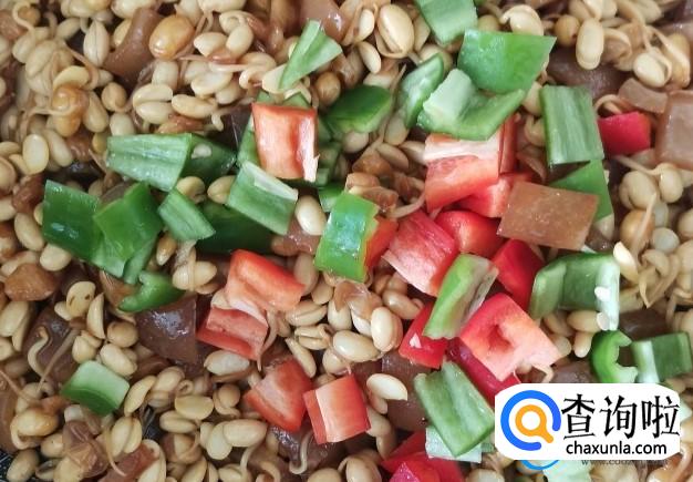 将调味品跟食材搅拌均匀之后即可出锅,此时美味可口的黄豆芽炒猪皮已经制作完成。