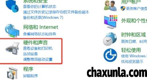 在控制面板当中点击硬件与声音进入下一个页面,点击管理音频设备。