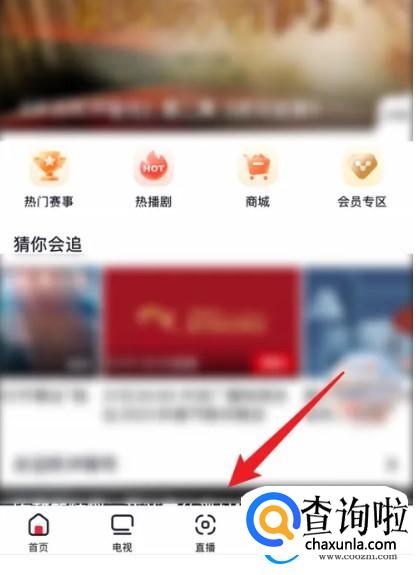 找到下方的”直播“按钮,点击它。