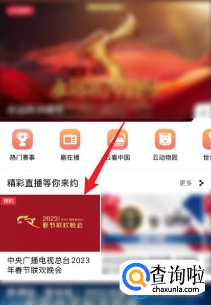 打开直播页面后,找到央视兔年春晚封面,点击它。
