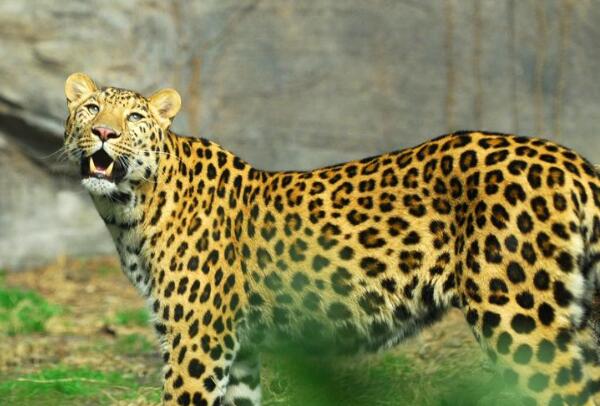 金钱豹是国家一级保护动物。属于大型肉食性动物,体形似虎,躯体均匀,四肢中长,趾行性,视、听、嗅觉均很发达;毛被黄色,满布黑色环斑,头部的斑点小而密,背部的斑点密而较大,斑点呈圆形或椭圆形的梅花状图案。
