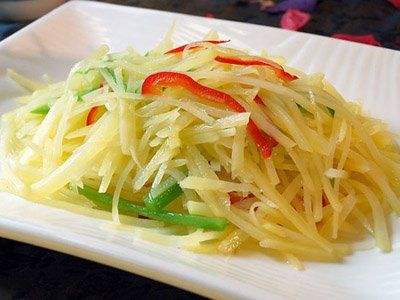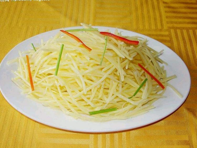 炒土豆丝中的维生素C是苹果的10倍,B族维生素是苹果的4倍。钙、磷、镁、钾含量是苹果的几倍至几十倍不等,尤其是钾的含量,可以说在蔬菜类里排第一位。富含大量碳水化合物,能供给人体大量的热能。土豆的皮富含绿原酸和硫辛酸。绿原酸有抗氧化和抗癌的功效,硫辛酸可淡斑、防止皮肤老化。