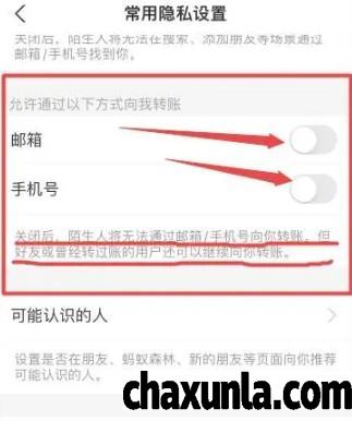 接下来把手机号和邮箱这个选项都关闭,即可拒绝陌生人向你转账。