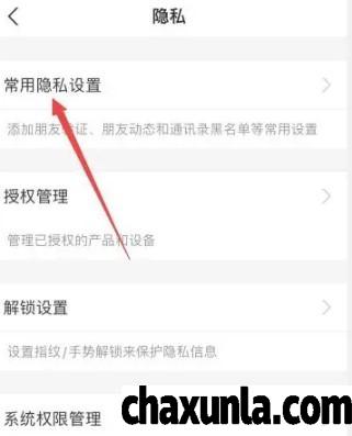 点击隐私设置,选择常用隐私设置。