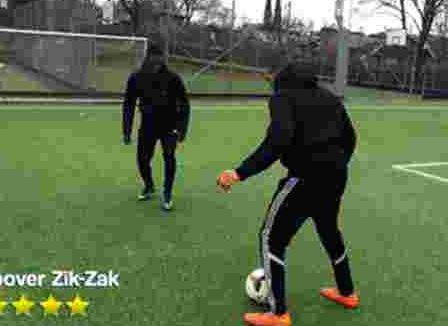 简单来说这个动作就是用一只脚在球前用脚后跟把球挡住,然后另一只脚在皮球后方用脚背把球压在前脚的后跟处,两只脚自然跑动的同时离开地面,让球从自己身后飞;起自己的头顶来到自己的身前从而完成突破。