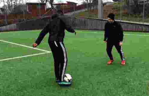 在接队友的长传封时,如果皮球传到了自己非惯用脚一侧的位置, 来不及调整身体的位置。就可以用这个把自己惯用脚绕到非惯用脚脚后的动作用惯用脚内侧完成停球。停球的时候停球脚脚踝要完全放松并在接触球的一婿间轻的向后撤来即掉皮球的冲击力。