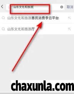 在搜索框搜索山东文化和旅游惠民优惠平台。