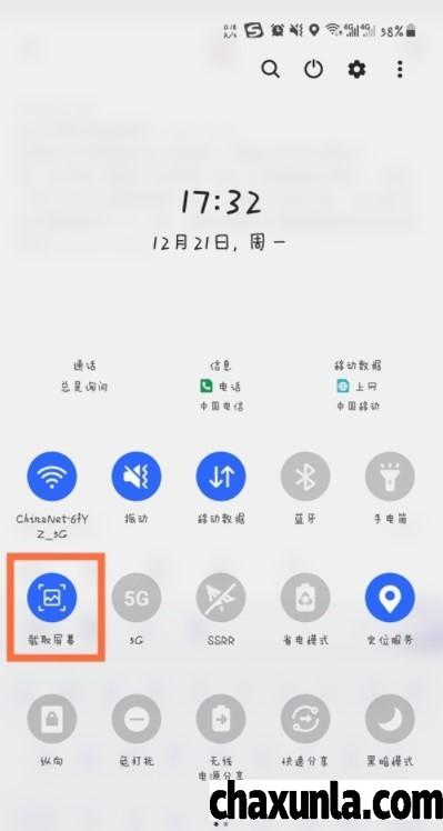 也可以在通知栏中向下滑动,在功能栏中点击【截取屏幕】