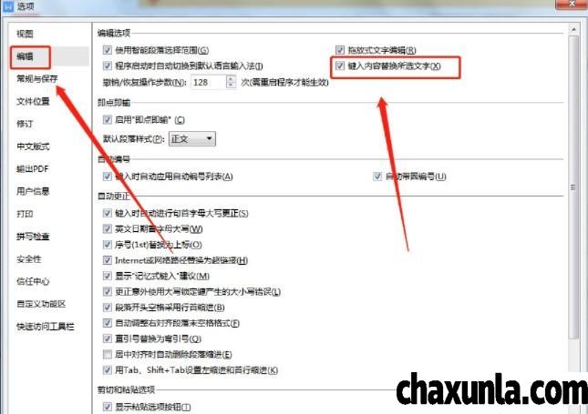 打开之后在此界面中点击【编辑】之后勾选【输入内容替换所选文字】即可。