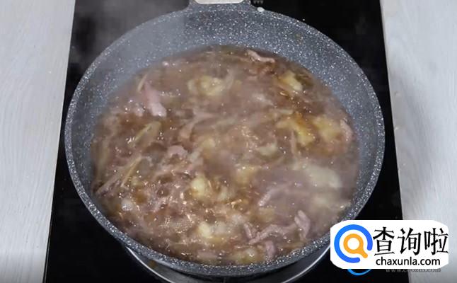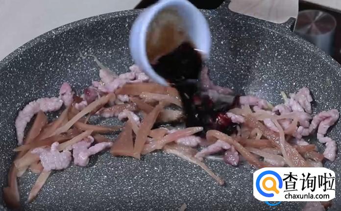 其实在炒肉丝的时候,需要将肉丝里面的水分完全炒干,再放入事先准备好的榨菜,继续翻炒,在翻炒时需要倒入生抽爆香,爆香完成之后需要加入适量的清水。
