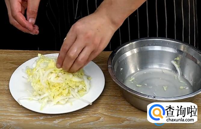 准备一个干净的碗,在碗里面放入白菜丝、食用盐,将白菜丝腌制10分钟的样子,腌制完成之后需要将水分挤干,然后在碗中放入生抽,食盐,大蒜末,醋,白糖,蚝油,辣椒油,香油,搅拌均匀即可。