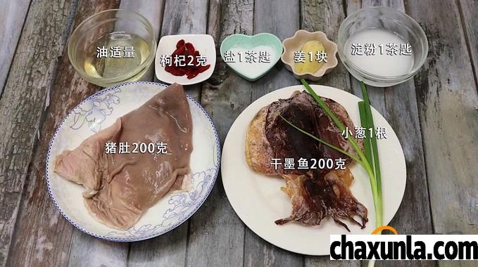 制作猪肚墨鱼汤需准备干墨鱼,猪肚油盐,小葱,生姜,淀粉,枸杞等等。