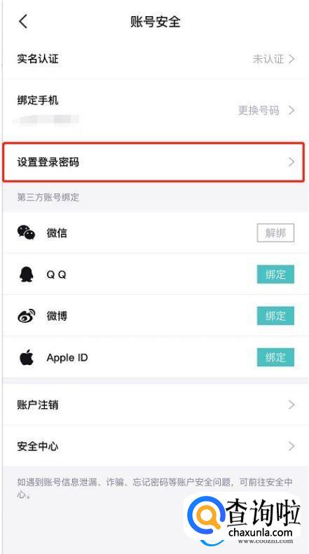 点击设置登陆密码选项。