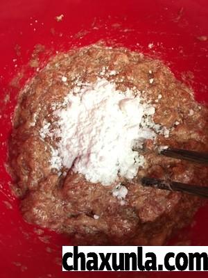 为了增加粘稠度和软滑的口感加30克淀粉再次搅拌好。