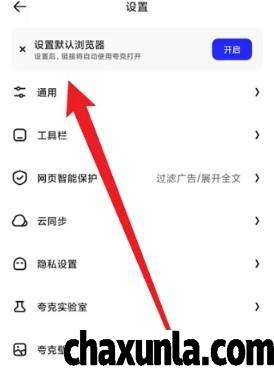 首先打开夸克浏览器,点击设置。