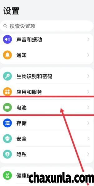 首先打开手机设置,点击电池。