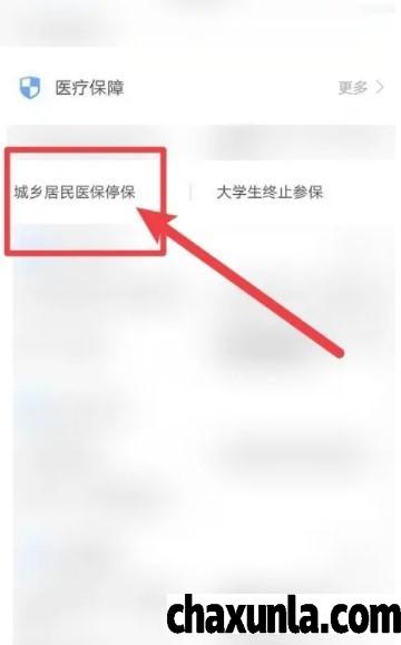 打开【查看更多】选项,之后点击【城乡居民医保停保】选项,即可。