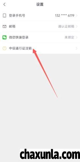 打开【中心通行证设置】之后找到【中信通行证注销】点击即可。