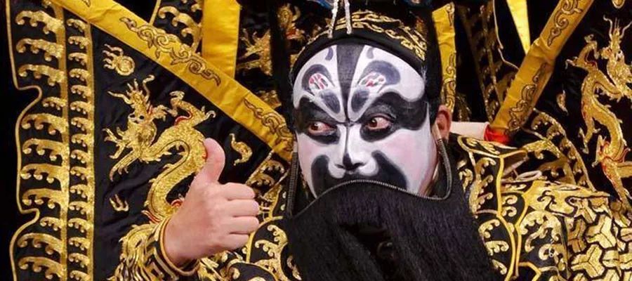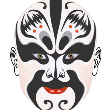 为适应露天演出,所勾脸谱一般只用黑、红、白三种对比强烈的颜色,强调五官部位、肤色和面部肌肉轮廊,如粗眉大眼、翻鼻孔、大嘴岔等。这种原始的脸谱是简单粗糙的,随着戏曲艺术的发展逐渐装饰化了。