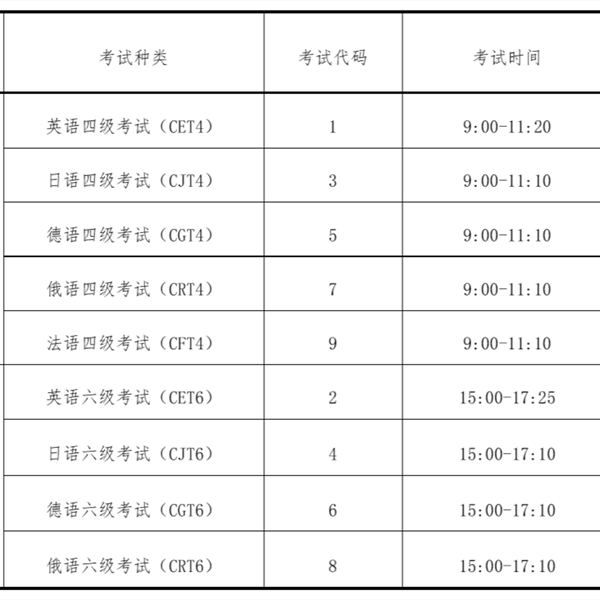 原定于2020年6月13日举行的全国大学英语四、六级考试延期并分两次举行,考试日期分别为7月11日和9月19日。同一考生同一级别只能选择参加一次考试。大学英语六级考试时间是下午15:00-17:25,成绩满分为710分。