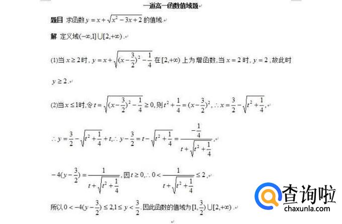 画图法。这种方法简单快捷,只要将函数图形画出来,一眼就能看到函数的值域。