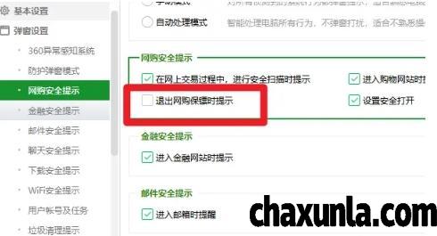 勾选退出网购保障时提醒即可。