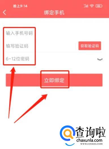 如下图所示。 我们进入绑定手机,点击输入手机号码、验证码、密码后,点击【立即绑定】,这样操作到位就可以了。