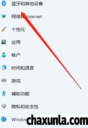 首先打开电脑设置,点击蓝牙和其他设备。
