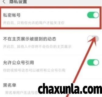 打开之后找到【私密账号】并打开,这样你允许的用户才能关注你。
