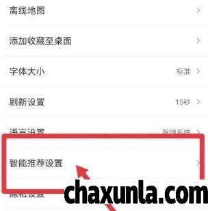 点击设置按钮打开设置页面,点击智能推荐设置。