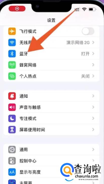 打开苹果手机的设置系统页面,点击页面里的【蓝牙】。