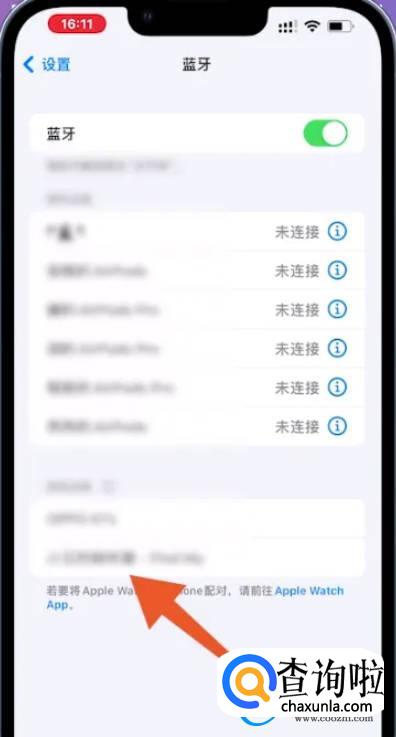 等待手机搜索蓝牙,在搜索栏中点击自己的AirPods名称。