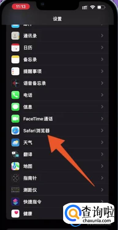 打开iPhone手机设置页面之后,点击页面中的【Safari浏览器】。