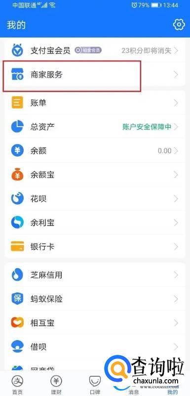 第一步打开桌面的支付宝,进去我的界面,点击商家服务