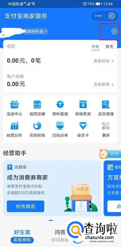 第二步进去商家服务之后,点击设置图标