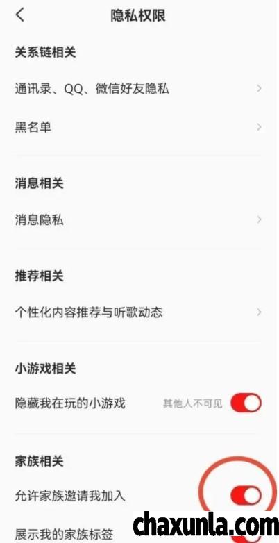打开之后在此界面中点击【允许家族邀请我加入】即可。
