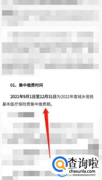 在集中缴费时间下方可以看到,2021年9月1号已经开始集中缴费了,如果你的还不能缴费,则需要到当地居委会查询原因。