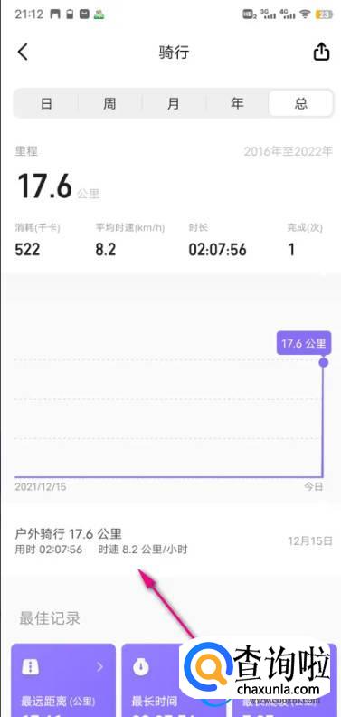 点击中间的骑行记录。