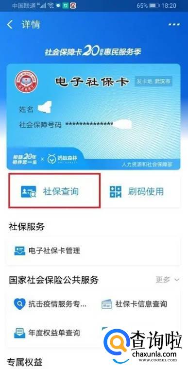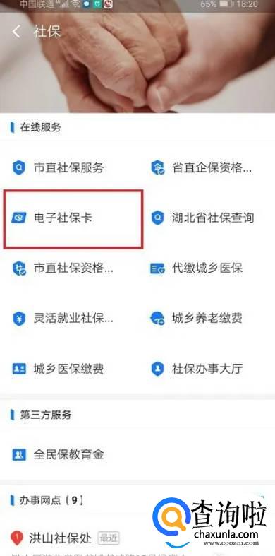 第四步进去电子社保卡之后,点击社保查询