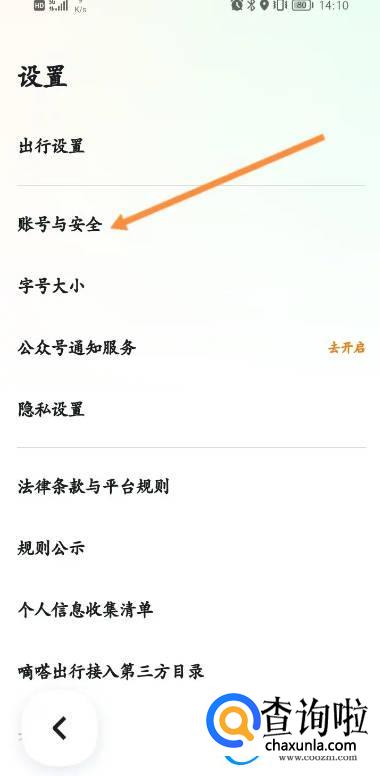 点击上面的账号与安全选项。