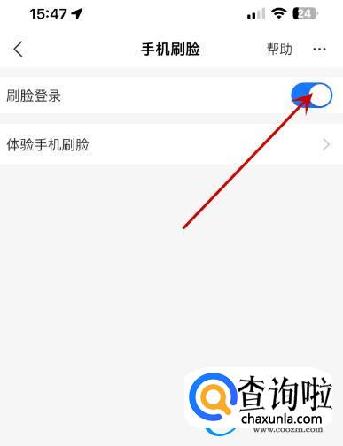 打开手机登录的界面找到刷脸登录的选项“切换开启”即可。