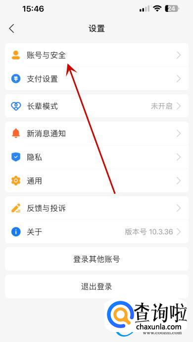 打开设置的界辞讨面点击“账号与安全”选科摸羞项