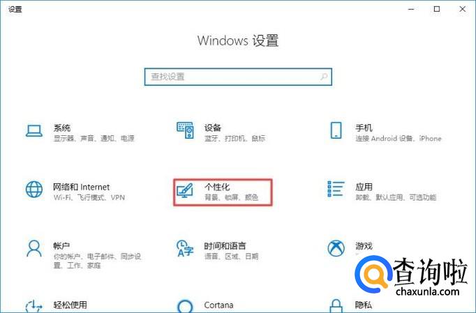 弹出的界面,我们点击个性化;