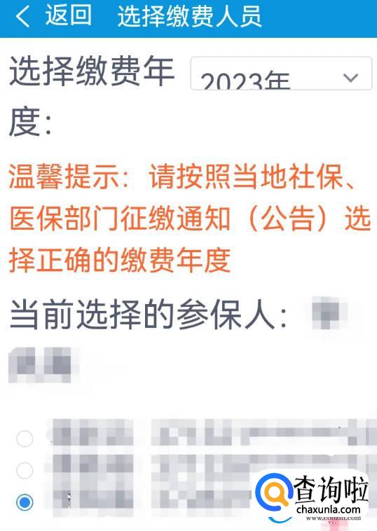 选择缴费年度“2023”