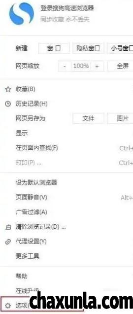 首先打开搜狗浏览器,点击上方的三道横杠图标,点击选项。