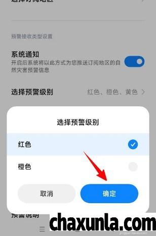 点击自然灾害预警,点击强提醒预警下面的选择预警级别。