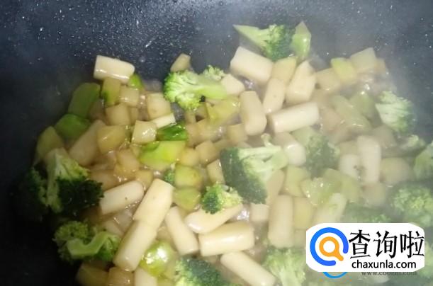 翻炒之后,放入事先准备好的料汁,搅拌均匀即可出锅,在锅上放入西兰花做点缀。